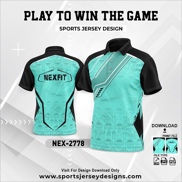 NEX-2778-FIROZI BLUE AND BLACK SPORTSWEAR SUBLIMATION JERSEY DESIGN